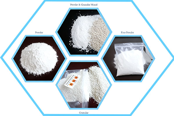Calcium hypochlorite is a white or light grey powder or granule with a strong chlorine smell. It is a powerful oxidizing agent and a widely used disinfectant with high chlorine content (typically 65–70%). It dissolves in water and releases hypochlorous acid (HOCl), which is effective in killing bacteria, viruses, and fungi.